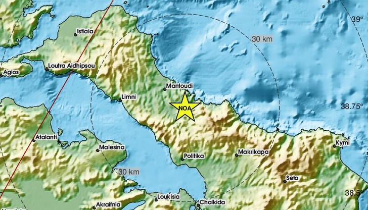 Земетресение с магнитуд 4.4 по скалата на Рихтер беше регистрирано снощи в 23:52 часа по Гринуич (02:52 часа местно време) в Гърция, близо до град Мантуди. Според данните от Европейския сеизмологичен център и Националната обсерватория на Атина, епицентърът на земетресението е бил на 9 километра източно-югоизточно от Мантуди и на 82 километра северно-северозападно от Перистери.