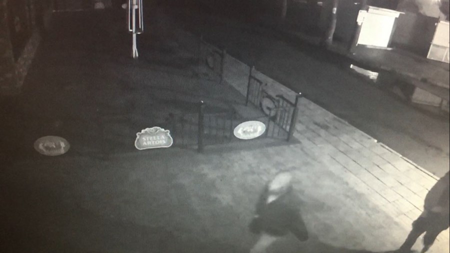 Заснети са от видеокамери в непосредствена близост до заведението. Вижда се как четиримата с качулки на главите се приближават до дървената конструкция пред фасадата на ресторанта, след минути лумват пламъци, а подпалвачите бягат.