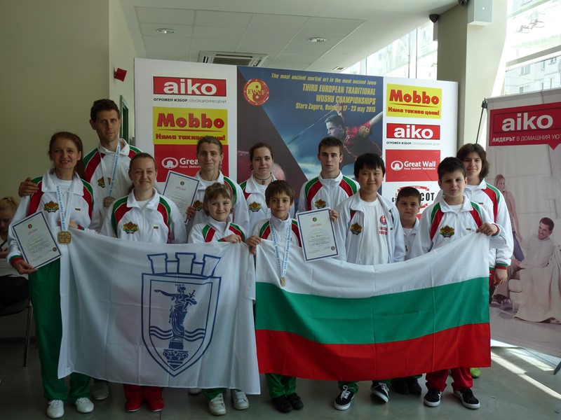 От 16 до 22 май 2015г. се проведе официалното Европейско първенство по традиционно ушу в Стара Загора, за пръв път в България. На събитието присъстваха едни от най-големите имена в световната и европейска общност: Президентът на Европейската федерация по ушу г-н Раймонд Смит от Великобритания, зам.- Президентът на Европейската и на Световната ушу федерация г-н Глеб Музруков. Висока чест бе специалното присъствие на г-н Ю Цзайчин, Президент на Световната ушу федерация и зам.- Президент на Международния Олимпийски Комитет. Неговото присъствие подсказва, че се очаква ушу да стане член на Олимпийското семейство.