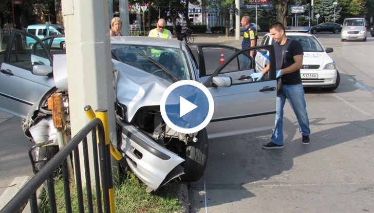 Тази сутрин около 7 часа сутринта лек автомобил БМВ, след преминаването си през кръстовището на Пантеона, при неизяснени към момента обстоятелства се врязва в стълб от тролейбусната мрежа.