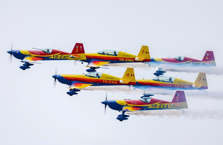 "Ястребите" от групата "Hawks of Romania" ще изпълнят фигури от висшия пилотаж с техните пет самолета, които са едни от най-престижните акробатични самолети в света.
