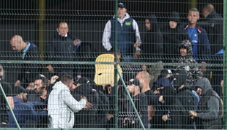 Сбиването на фенове е станало по време на мача - около 10-ата минута, което е наложило прекъсването на мача заради конфликта, възникнал в сектора за гости. Няма сериозно пострадали фенове или сериозно пострадали полицаи, но са потрошени седалки и заграждения в сектора. Щетите тепърва ще се изчисляват.