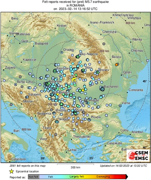 Земетресение разлюля Румъния днес в 15:16 часа.