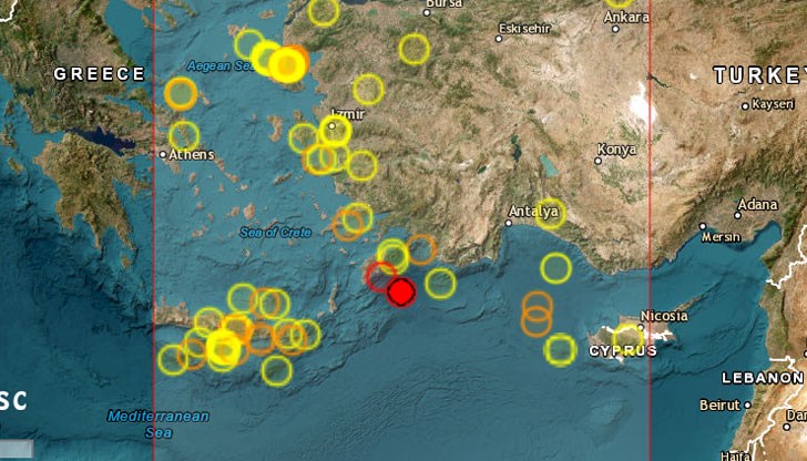 Телевизия Скай предаде, че трусът, който е регистриран в 14:37 ч. местно (и българско) време, е бил усетен и на остров Крит.