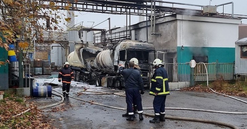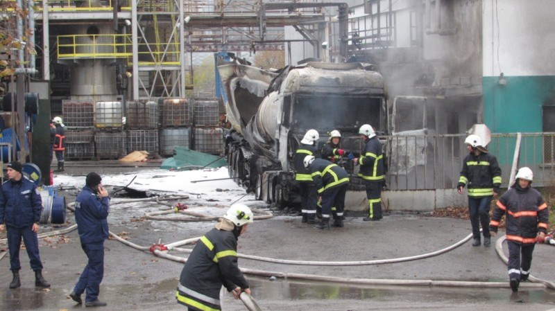 При инцидента е пострадал още един малък камион, който е трябвало да зарежда в завода, а собственикът му се е спасил като по чудо.