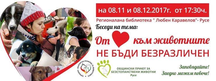 Те са под наслов "От любов към животните. Не бъди безразличен", като лектори ще бъдат д-р Антония Кръстева и д-р Катя Маркова.