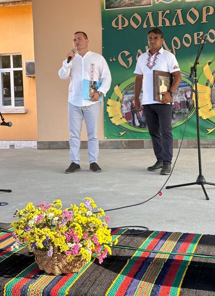 Пенчо Милков връчи поздравителни адреси на своя колега както за провеждането на фолклорния фестивал, така и за рождения ден на Георги Пенков, който беше преди броени дни.
