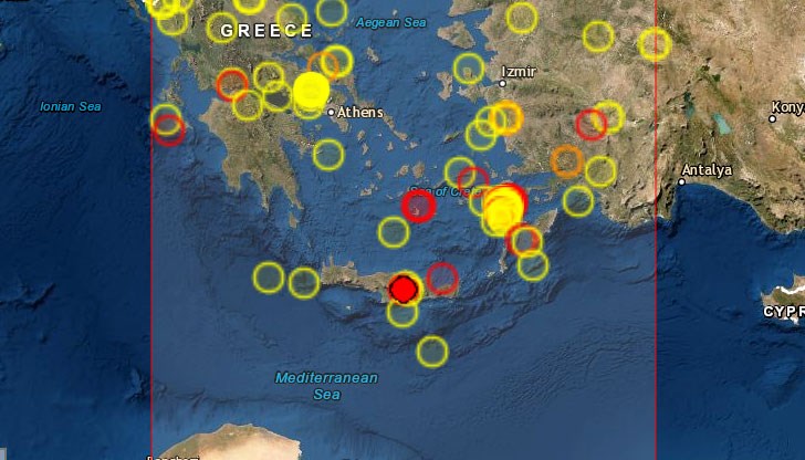 Силно земетресение разтърси остров Крит в Гърция. Първоначалната информация за магнитуда бе 5.6, но след това тя бе ревизирана на 6.2 по Рихтер.