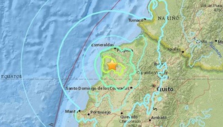 Епицентърът на труса е бил на 58 км южно от провинция Есмералдас на дълбочина от 10 км, съобщава 24 часа.