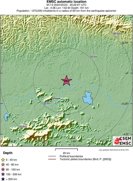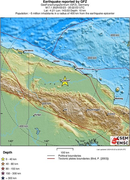 Земетресение с магнитуд 6,9 по Рихтер разтърси Папуа Нова Гвинея в събота, 23 март 2024 г., съобщи Европейско-средиземноморският сеизмологичен център.