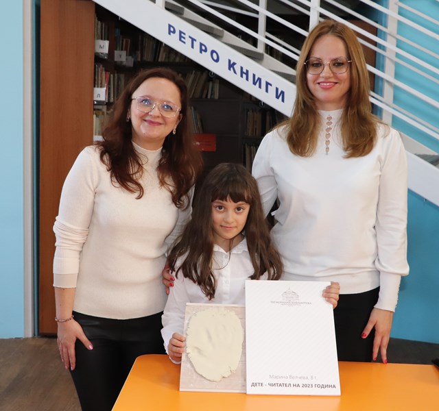 Най-малкият читател за 2023 г. е Матео Симеонов, записан в библиотеката на 23 дни. Читателят с най-много заети книги от отдела за възрастни е Богомил Хараламбов. И двамата получиха грамоти и награди.
