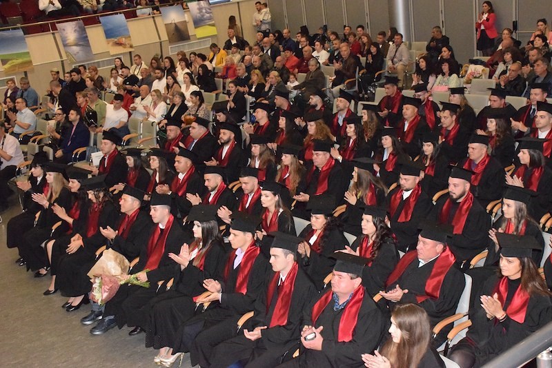 Първенецът на випуска от специалност "Право" Виктория Петкова произнесе слово от името на своите колеги, в което благодари на преподавателите за усилията им и поздрави завършилите студенти.