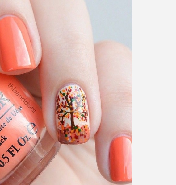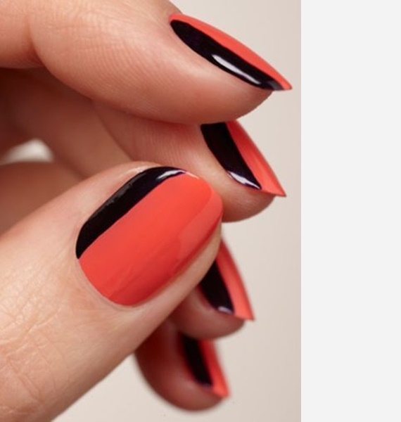 Всички нюанси оранжево се комбинират страхотно с черно – добавете една лентичка черен лак за повече атрактивност.