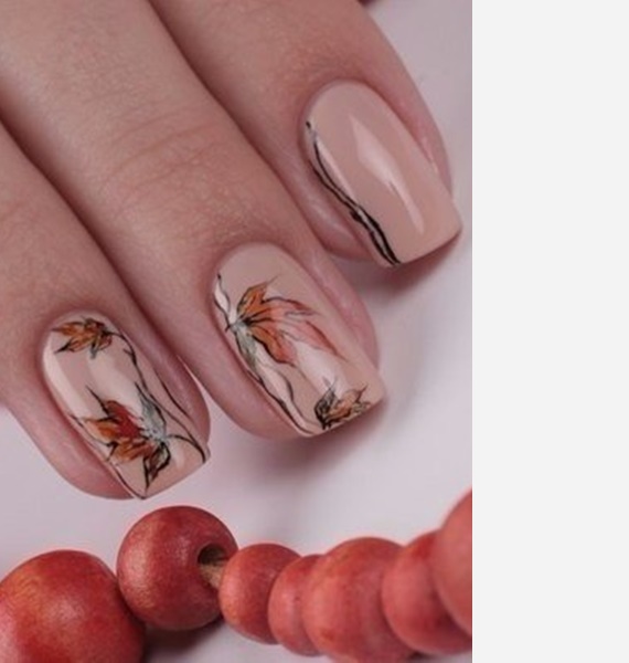 Бежов основен лак и много деликатна есенна рисунка върху някои нокти.