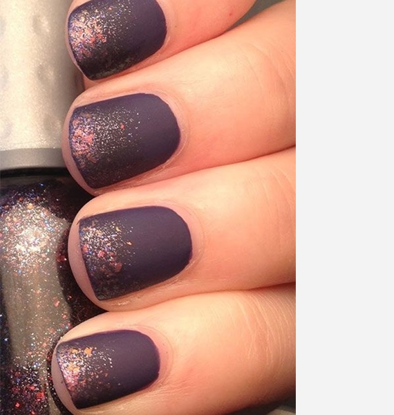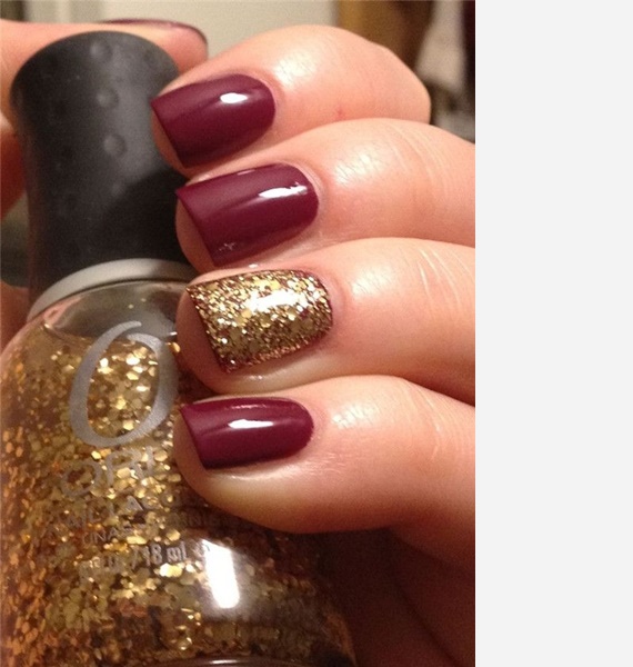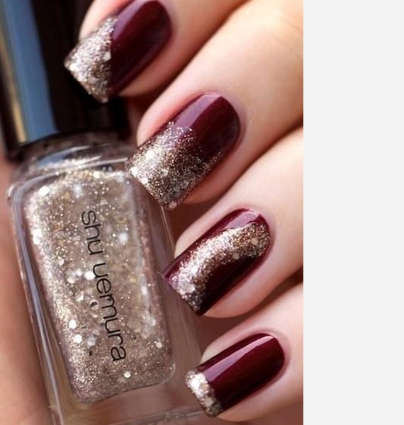Ето още една интересна идея – разкошното бордо с брокатено злато, нанесено по различни начини.