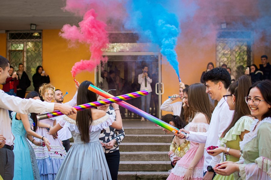 Русенски абитуриенти от XIIа клас в СУЕЕ „Св. Константин-Кирил Философ” организираха оригинална изненада за своя класен ръководител. Те връчиха на г-жа Татяна Стефанова покана за абитуриентския бал, облечени в специални костюми, предоставени от Държавна Опера - Русе.