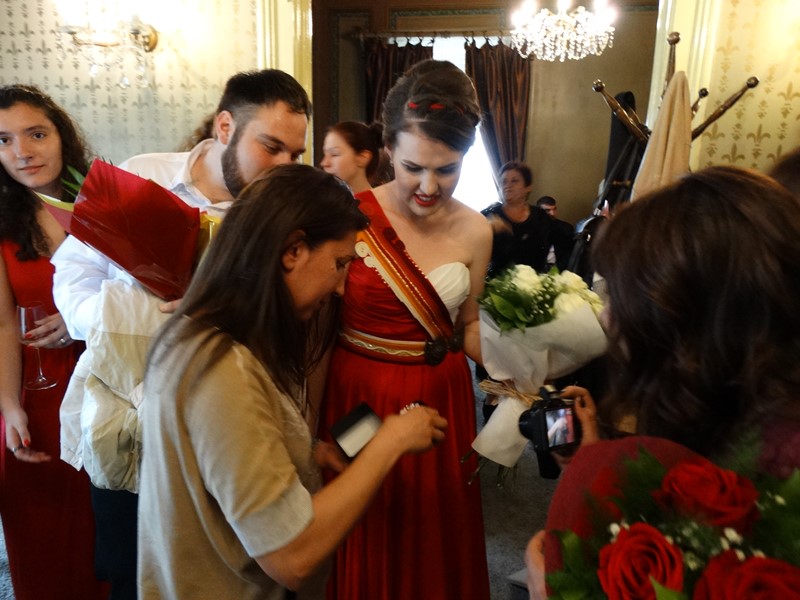 Дори на бала си роклята и е с пафти и истински гайтани в етно стил.Изглежда гордо и красиво.Различна е!