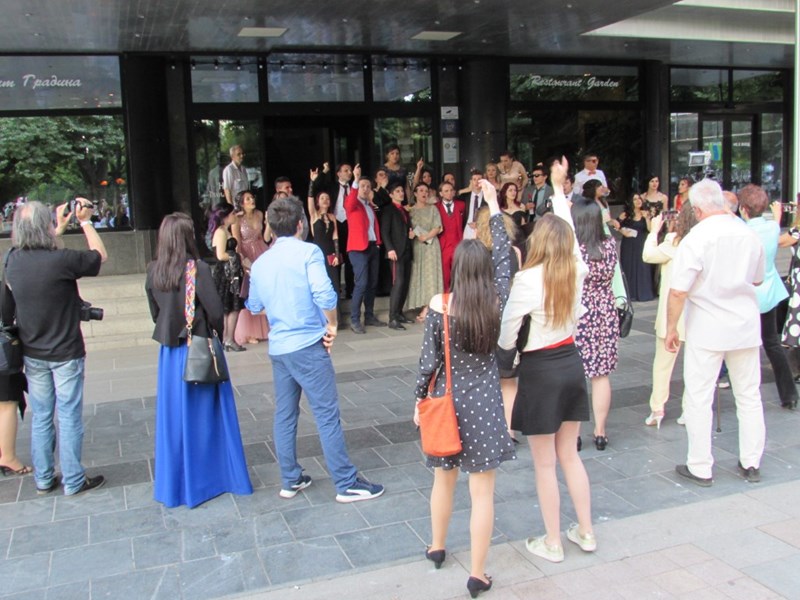 Част от абитуриентите избираха за обща снимка Историческия музей, други – като Училището по изкуствата тематично винаги са пред операта, но задължително маршрутът на момичетата и момчетата в официални тоалети минава през Паметника на свободата.