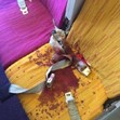 Най-сериозно е ранен пътник, който е без предпазен колан и излита във въздуха, в резултат на което удря главата си. Седалката, на която седи, е покрита с петна от кръв.
