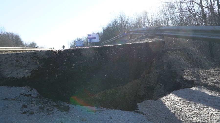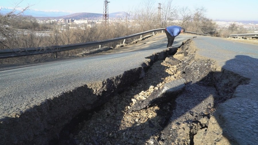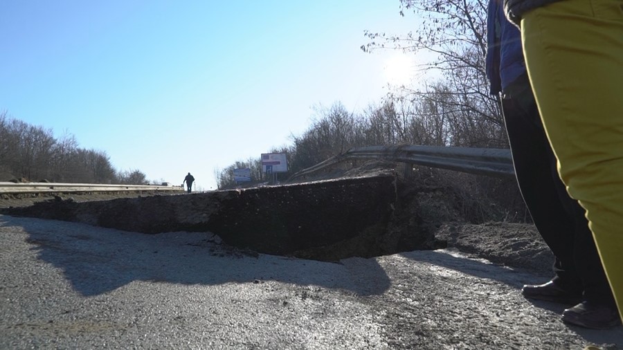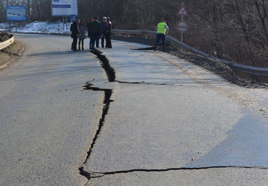 Асфалтът започна да се цепи преди два дни, като само за нощ пукнатината е пропълзяла цели 50 метра, а дълбочината е до 50 см. Отсечката е затворена за движение.