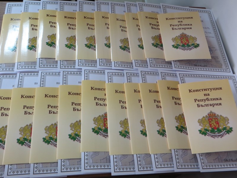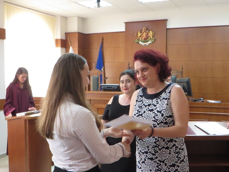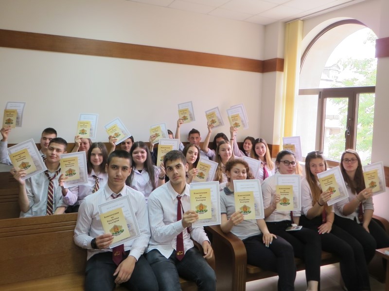 В края на срещата всеки ученик получи удостоверение за участието си в програмата и екземпляр на Конституцията на Република България, предоставени от Висшия съдебен съвет.