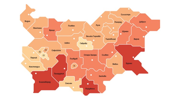 Висок дял на гласувалите в секции в риск има и в избирателните райони на Монтана (14 до 22%), Пазарджик (14 до 22 %), Сливен (16 до 22%), Търговище (15 до 21%), Разград (16 до 20%), Шумен (15 до 20%) и Враца (15 до 20%).