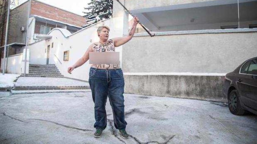 Акцията на Александра Немчинова е била посветена на президента на Чехия Милош Земан, който може да бъде преизбран за втори мандат.