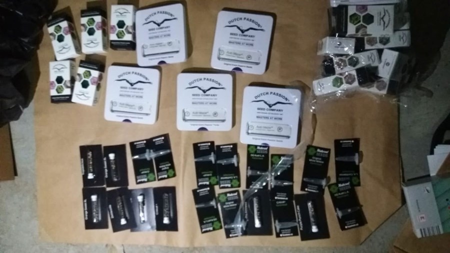 След претърсване на три адреса в София и Бургас са иззети голямо количество семена за канабисови растения, мобилни телефони и пари.