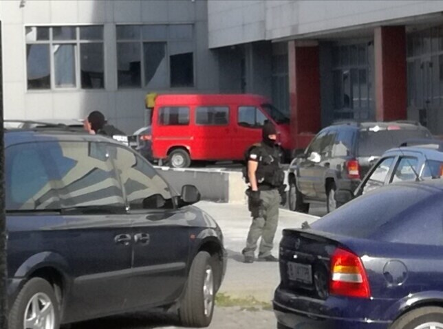На мястото са най-малко седем тежко въоръжени и оборудвани с бронежилетки полицаи, има и цивилни служители на реда.