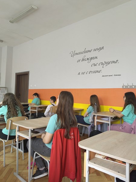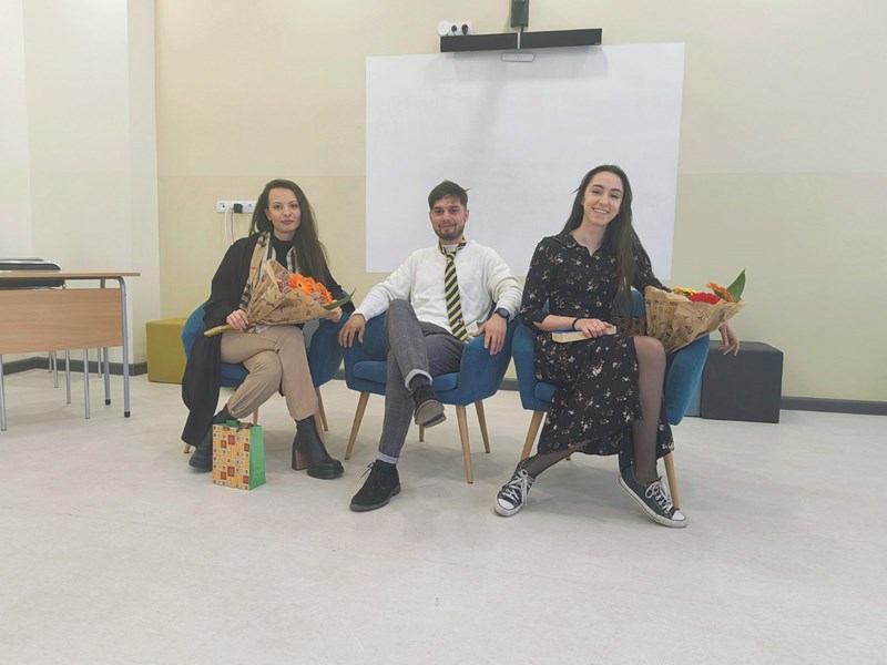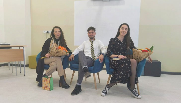 Младите надежди на Драматичен театър „Сава Огнянов“ Ивана Керанова, Катерина Борисова и Ростислав Панков посетиха Училището по европейски езици. Пред младежите в гимназиален етап те представиха откъси от „Времеубежище“ (Георги Господинов), „Малкият принц“ и „Мелничката на дъното на морето“ (норвежка народна приказка). По желание на учениците, четенето премина в стихотворна форма, а в края на срещата актьорите разговаряха с децата за тясната връзка между литературата и театъра.