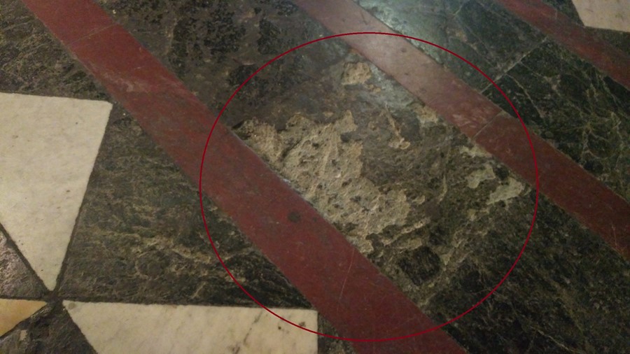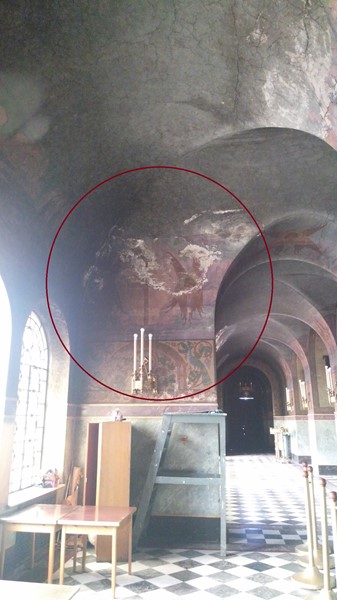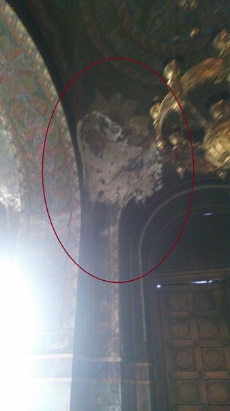 Отделно от това установихме много рушащи се стенописи, разбити мраморни плочки на пода и безпризорно висящи крила на прозорци в горната част на храма.
