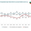 Въпреки това, подкрепата за членството в НАТО, която отбеляза ръст след началото на руската инвазия в Украйна, продължава да бъде доминираща. Налице са обаче повече колебания относно способността на този съюз да защити страната ни в случай на въоръжен конфликт.