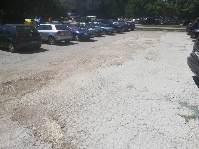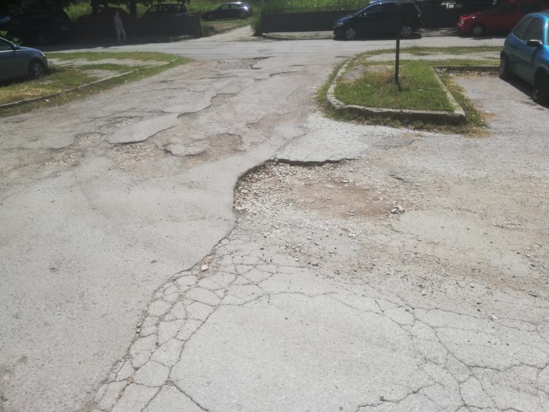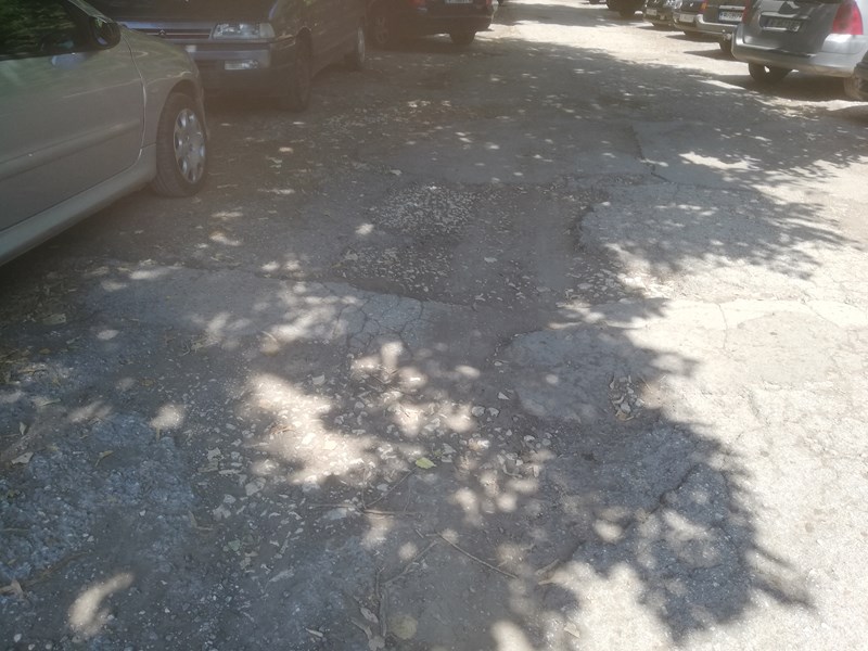 Години наред паркинга и уличките към блока и блоковете в района са в лошо състояние, дупките стават естествено все по-големи и дълбоки.