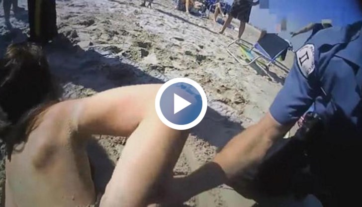 Единият от полицаите губи търпение и взима белезници от колегата си. Сваля момичето на пясъка, като я хваща за косата. После започва да я души и да я удря по главата с юмрук, докато околните хора гледат ставащото без да се намесват.