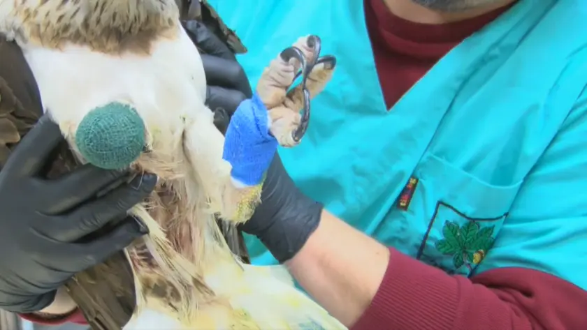 Заради мащаба на уврежданията, екипът на спасителния център е бил принуден да премахне единия крайник на птицата, за да спаси живота ѝ.