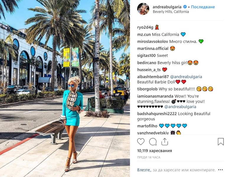 Половинката на Кубрат Пулев публикува снимка в социалните мрежи от Бевърли Хилс, което е само на час път от Коста Меса, където наскоро любимият й се замеси в чутовен скандал, като целуна репортерката Джени Суши след интервю.