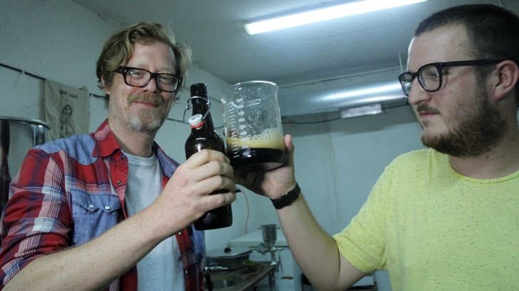 Карл Роял от Холандия и Реми Чалонер от Великобритания вкарват лактобацилус булгарикус в бирата.