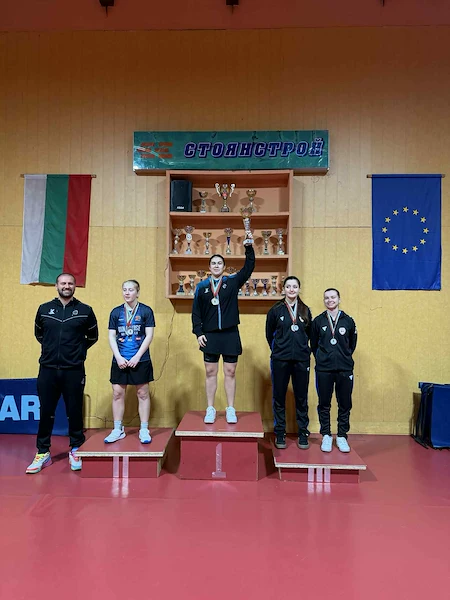 Третият медал за русенката дойде в дисциплината смесени двойки. Там тя си партнира с Ники Генчев от пловдивския клуб "Стоянстрой". Тандемът завоюва бронзов медал след оспорван полуфинален сблъсък.