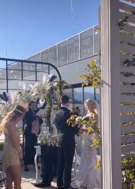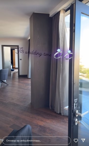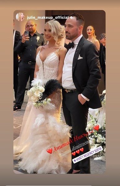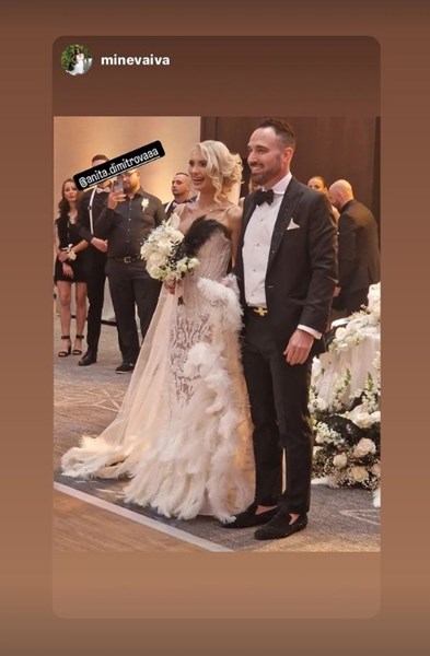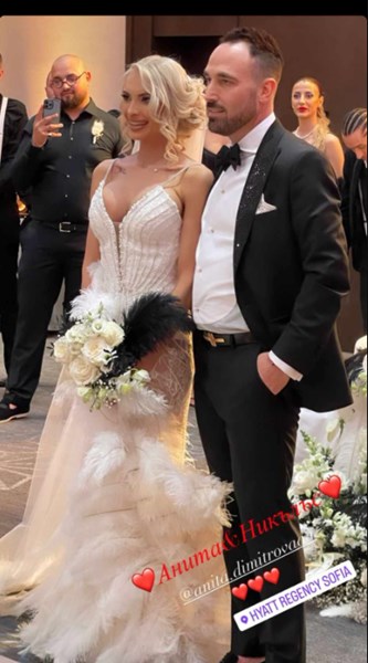 Анита публикува видеа и снимки от тържеството, на което е с пищна булчинска рокля, а двамата със съпруга ѝ изненадват гостите с интересен сватбен танц при влизането им в ресторанта, пише вестник 24 часа.