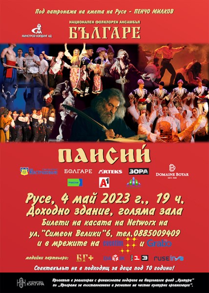 След четиригодишно отсъствие от русенската сцена, в навечерието на празника на Русе – Гергьовден, Национален фолклорен ансамбъл „БЪЛГАРЕ“ ще представи пред русенци и гостите на града своя нов проект „ПАИСИЙ“.
