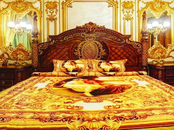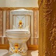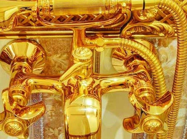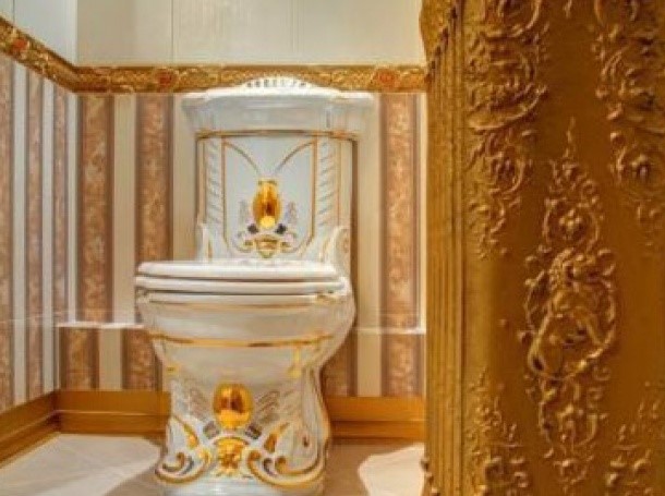 Позлатата изобилства дори и в санитарните помещения. В златно с извити орнаменти е и тоалетната, става ясно от „ослепителните” кадри