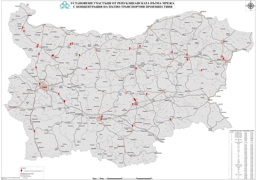 Агенция „Пътна инфраструктура" (АПИ) публикува интерактивна карта на пътните участъци с концентрация на катастрофи в България.