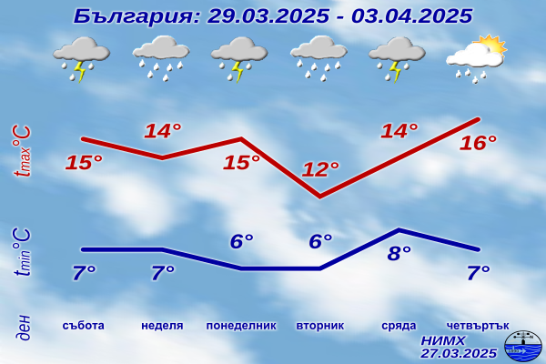 Новата седмица ще започне с промяна в атмосферните условия. От северозапад, а по-късно и от изток-североизток, ще проникне поредна порция студен въздух. Метеоролозите предупреждават, че въздушната маса ще остане неустойчива, което ще доведе до краткотрайни валежи, като на места те ще бъдат интензивни и придружени с гръмотевици.