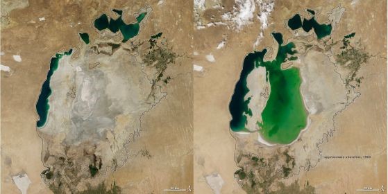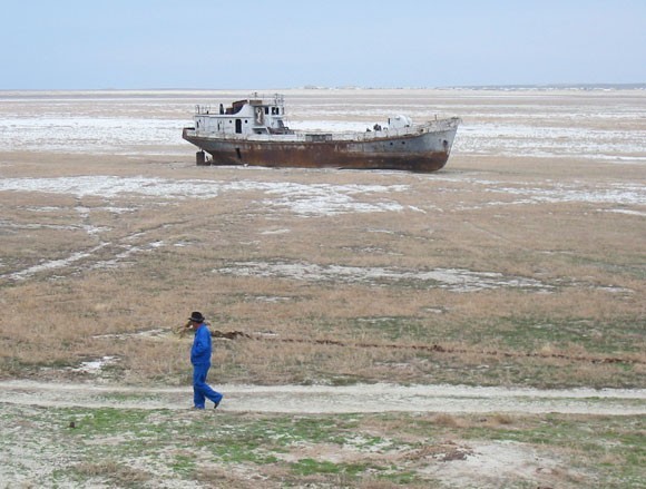 В опит да повишат производството на памук в близките степи през 50-те и 60-те години на миналия век, съветските инженери са отклонили двата основни източника на вода за басейна - реките Амударя и Сърдаря. В резултат на това коритото на езерото е било замърсено от химикалите, използвани при отглеждането на реколтата, пресъхнало е, а останалата вода е повишила солеността си, убивайки по-голямата част от животните в региона и напълно унищожавайки рибната индустрия.