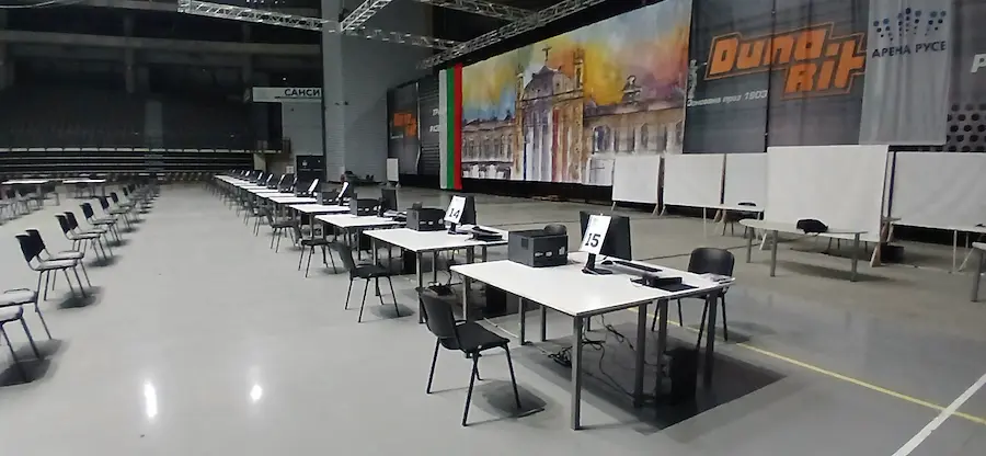 Спортната зала "Арена Русе" е запечатана и напълно готова за провеждането на предсрочните парламентарни избори утре, 19 април 2026 година. Именно там ще се събират протоколите от секционните избирателни комисии и ще се обобщават окончателните резултати от вота за целия регион.