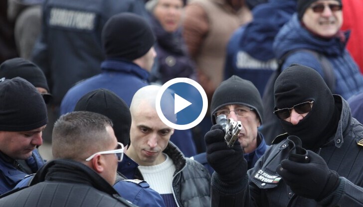 Полицията арестува млад мъж на протеста. Той е задържан с газов пистолет. Оръжието е иззето, а арестуваният е отведен в РУ, предаде NOVA