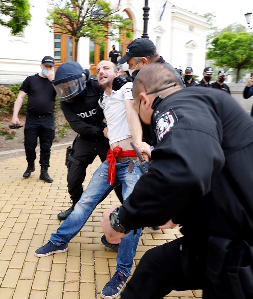 Поне шестима души са арестувани по време на днешния протеста пред парламента срещу правителството, тъй като те се държали провокативно към полицията.