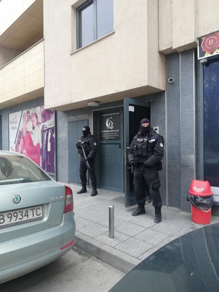 Полицейски части с маски и оръжия са на входа пред Басейнова дирекция. Извършва се претърсване и изземване в сградата.