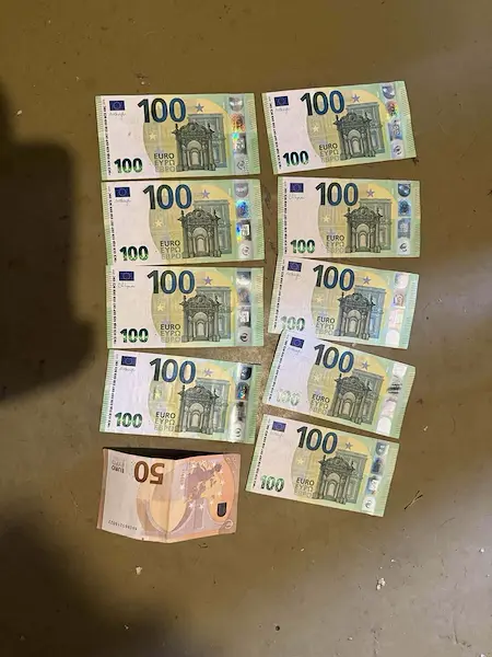 В хода на обиска криминалистите са се натъкнали и на електронна везна, използвана за прецизно дозиране на наркотика. Органите на реда са конфискували и солидна парична сума – девет банкноти с номинал от 100 евро и една банкнота от 500 евро, което събужда допълнителни подозрения за произхода на средствата.