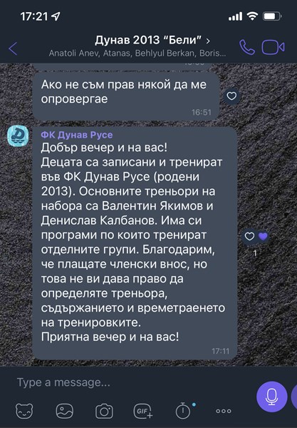 Както треньорите така и ръководството на ФК Дунав си позволяват в прав текст да обясняват на родителите на трениращите деца там, че това, че си плащат членския внос не им дава право да имат някакви изисквания или да предявяват някакъв вид претенции. Родител възмутен от това, че тренировката не трае дори 1 час и промяна в треньорите без уведомление получи следния нагъл и арогантен отговор.